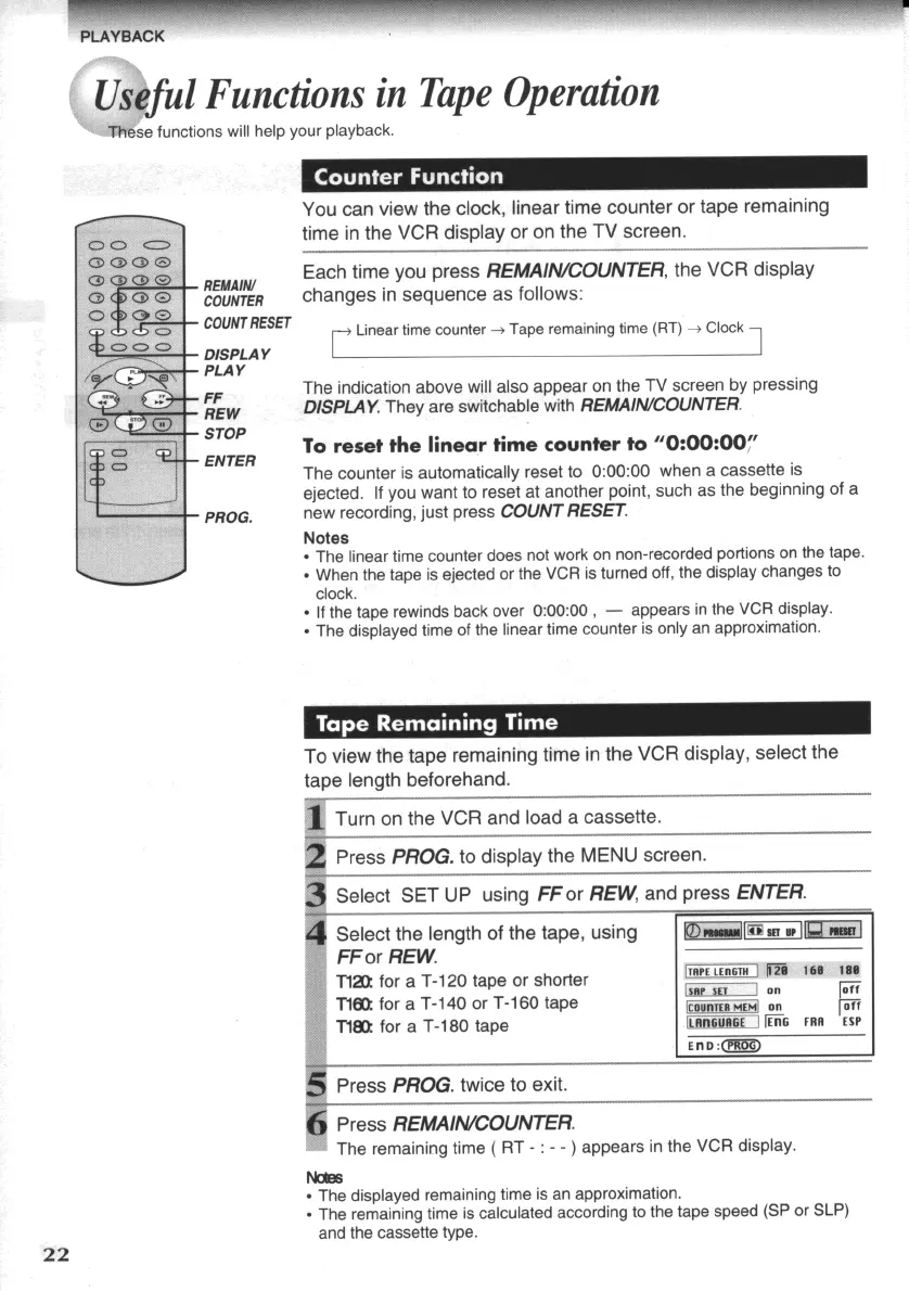 Toshiba W607 - Useful Functions in Tape Operation; Counter Function; Tape Remaining Time