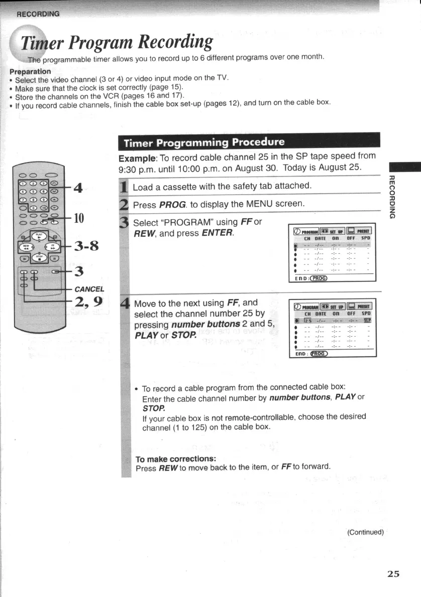 Toshiba W607 - Timer Program Recording; Timer Programming Procedure