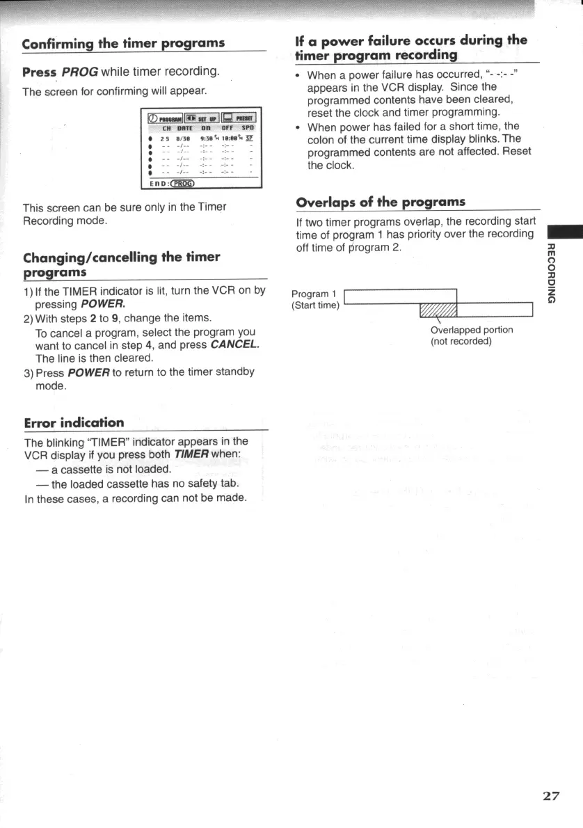 Toshiba W607 - Confirming the Timer Programs; Changing;Cancelling the Timer Programs; Overlaps of the Programs