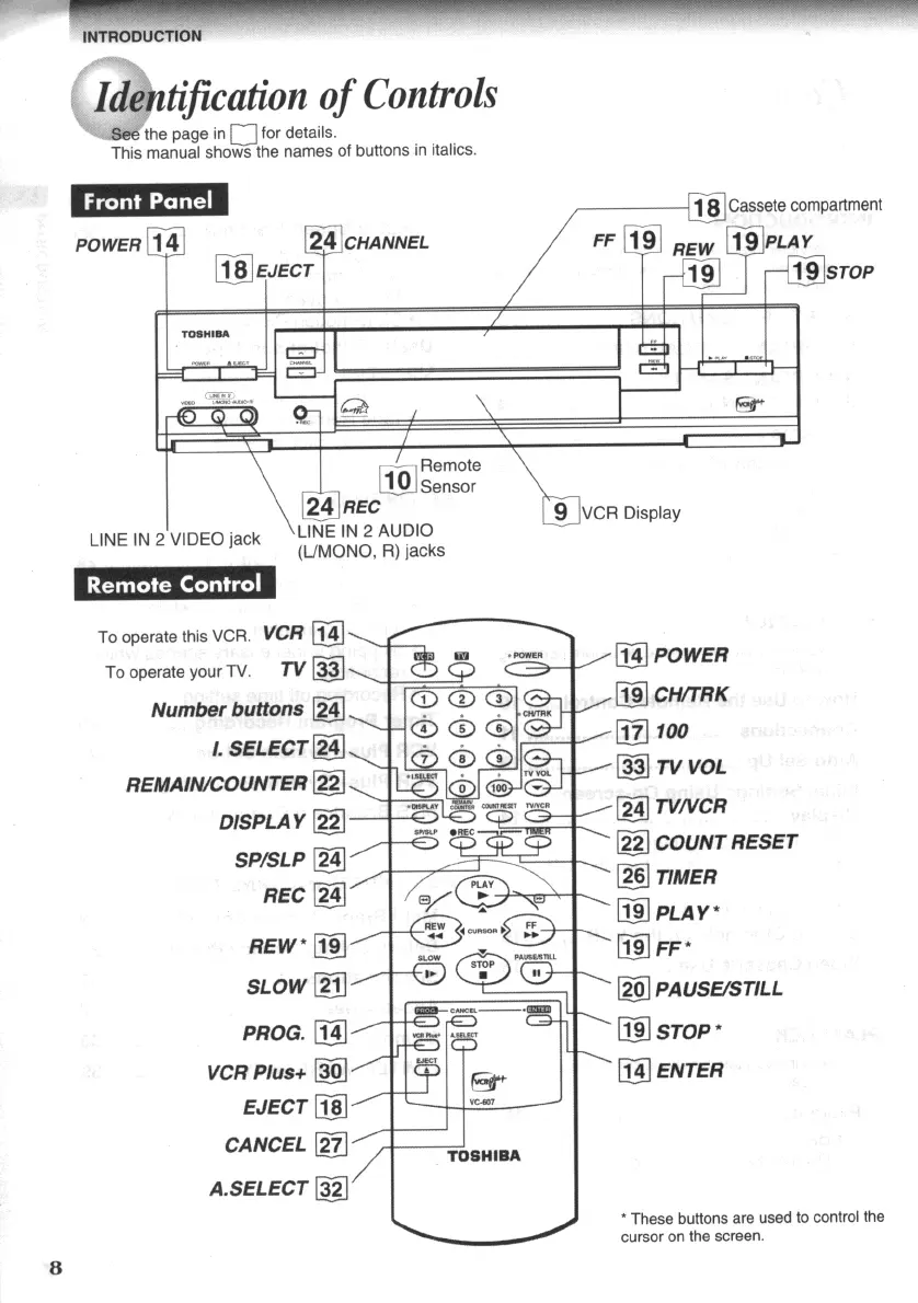 Toshiba W607 - Identification of Controls; Front Panel; Remote Control