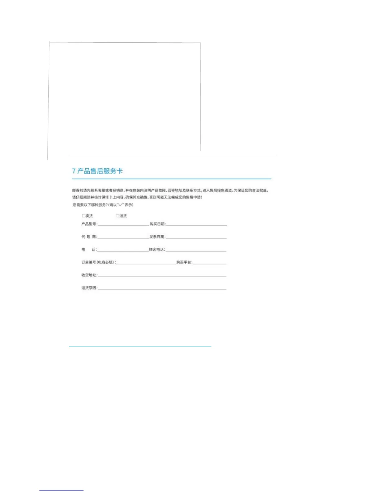 product’ failure, mailing address and contact information in the package, enter