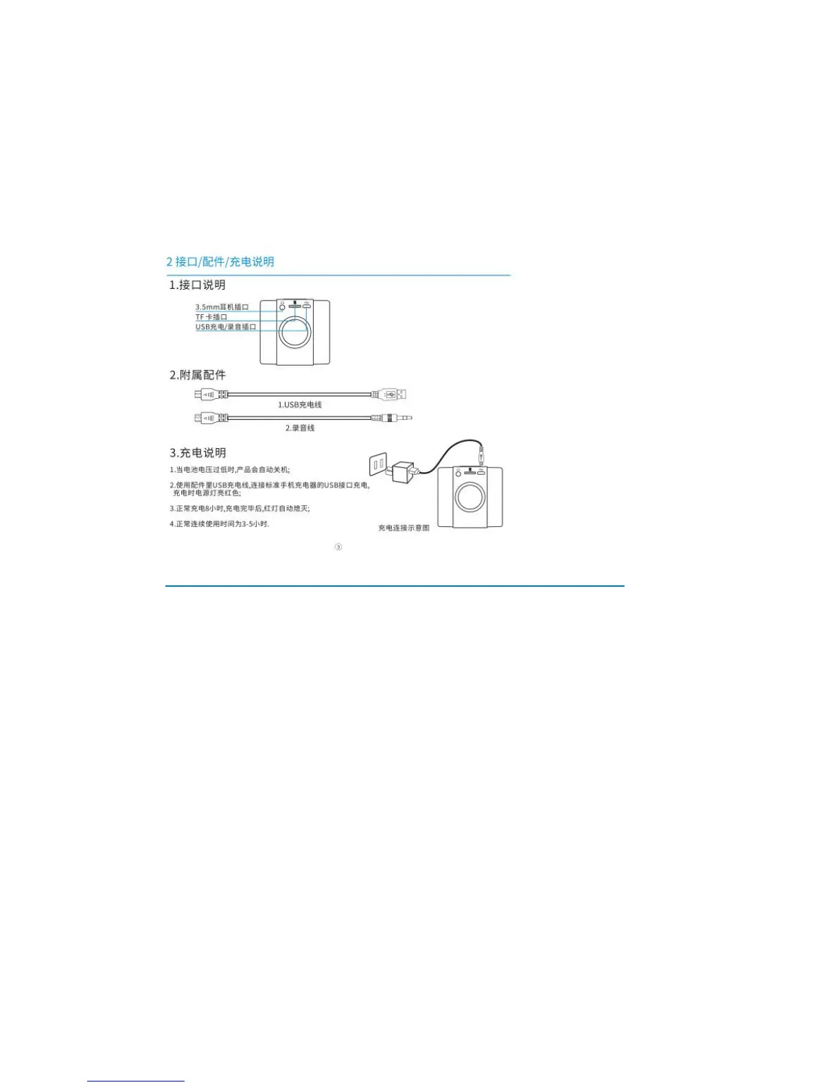 2.Connection Jack & Accessories/Charging Instruction