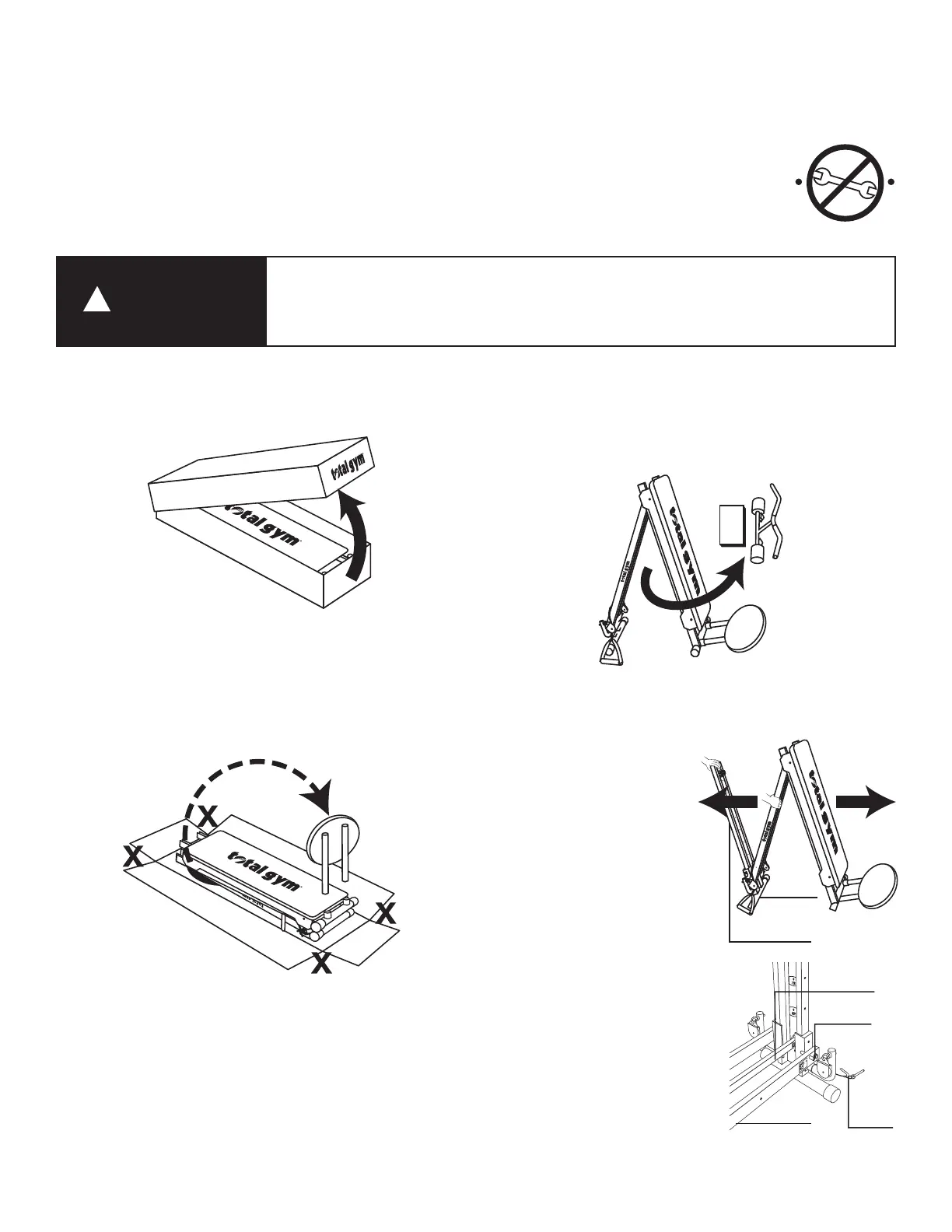 SAFETY HITCH PIN LOCKED IN PLACE BEFORE GETTING ON YOUR TOTAL GYM TO AVOID SEVERE INJURY.