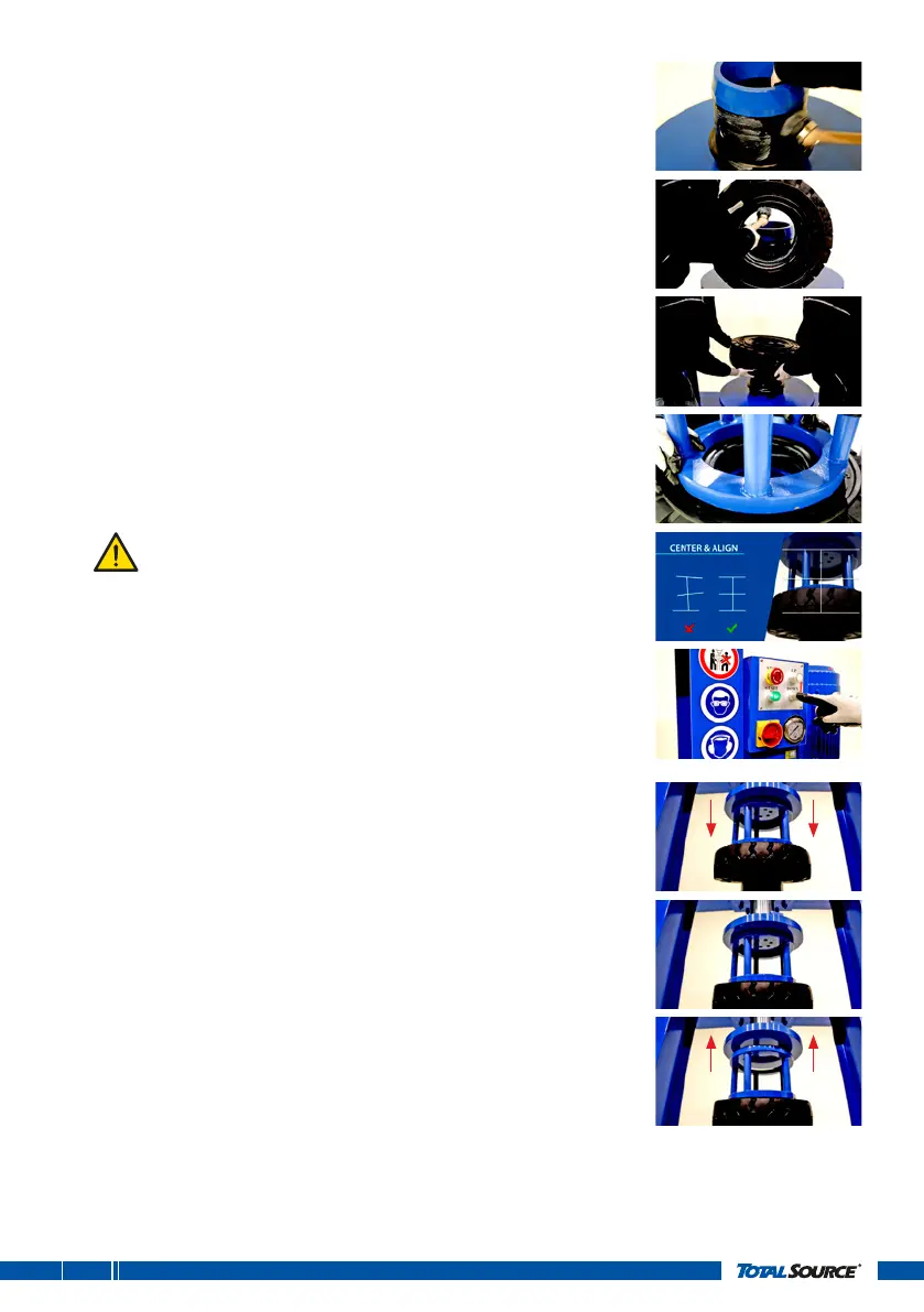 8. Place the tyre press cage on the tyre.