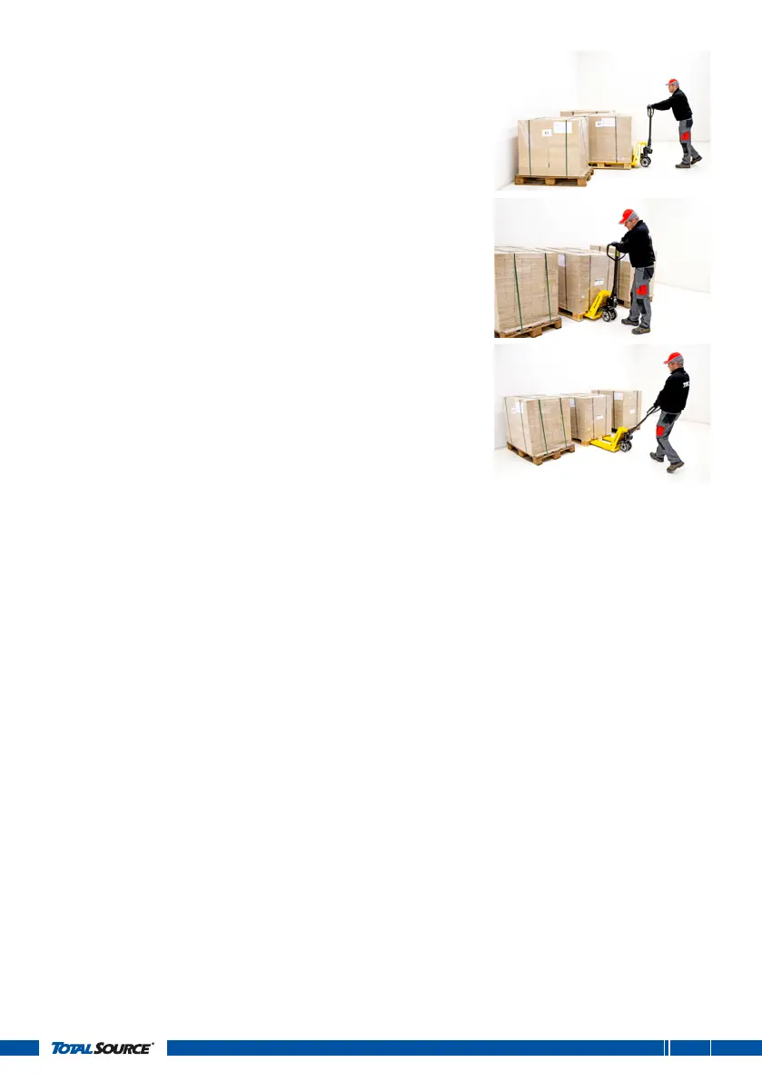 8. Unload the pallet truck by bringing the forks to their