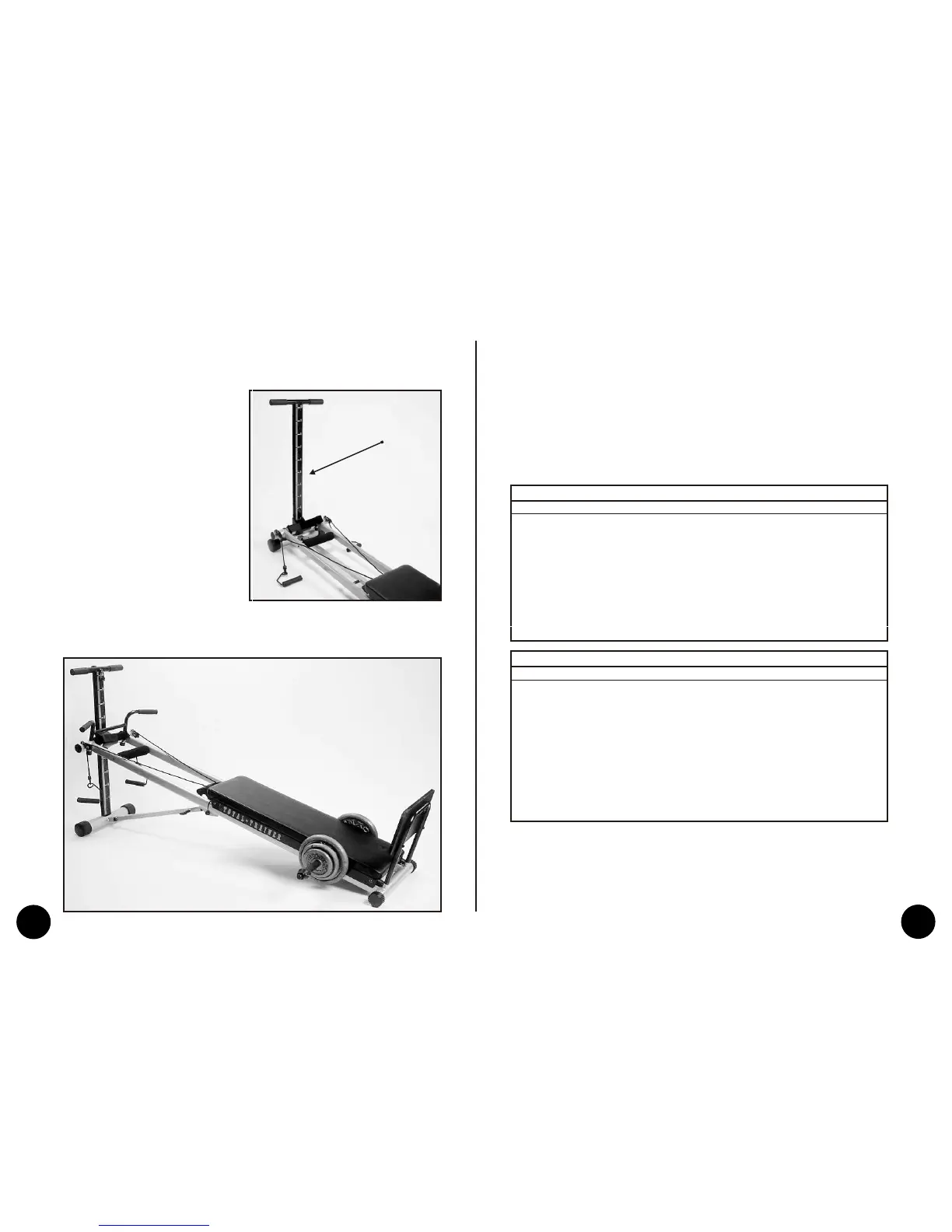 Table 2 is with the Arm Rope DETACHED from the Glide Board Pulley on the