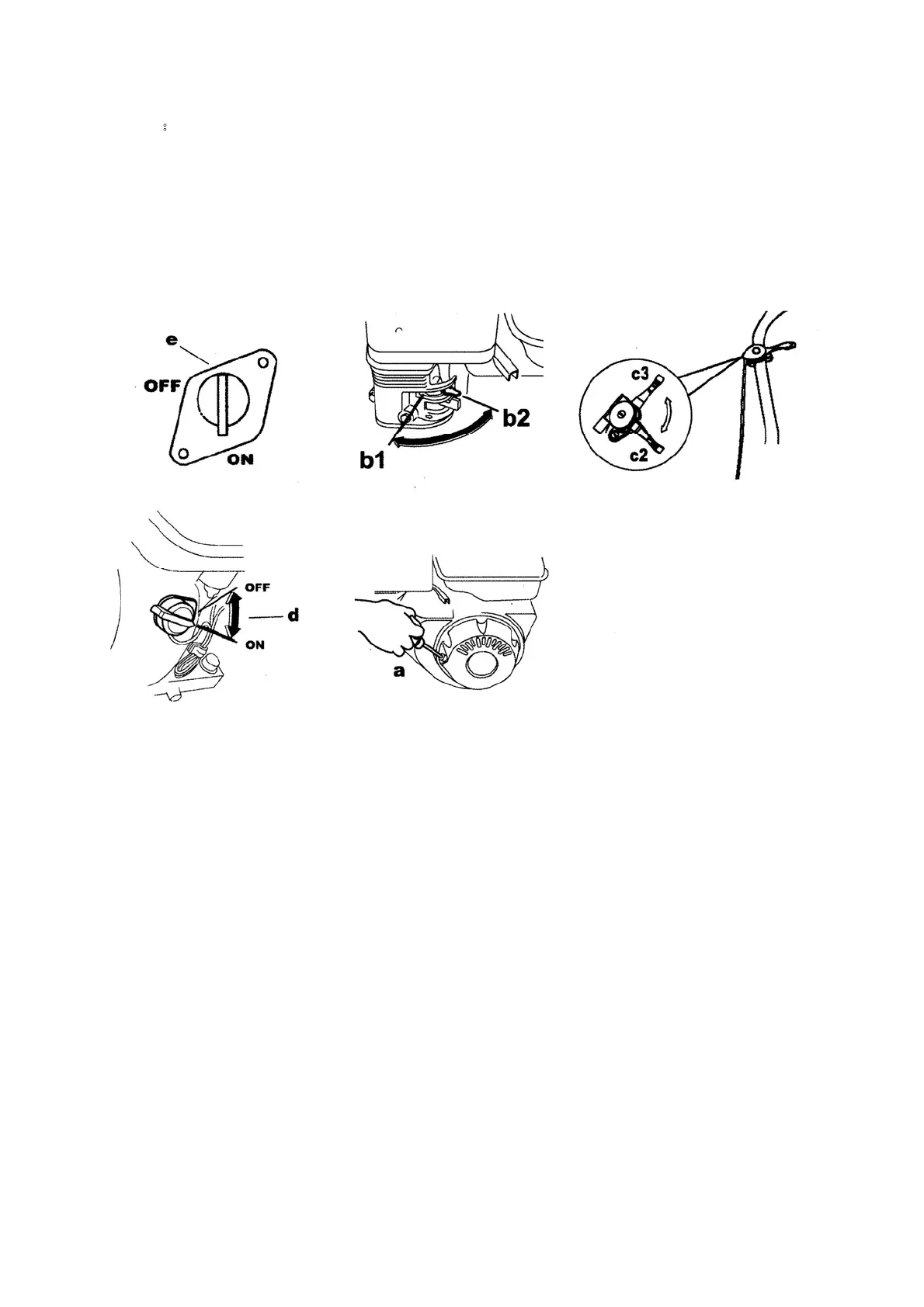 CAUTION:Always open choke(b2)with throttle in idle position(c3).Opening choke with