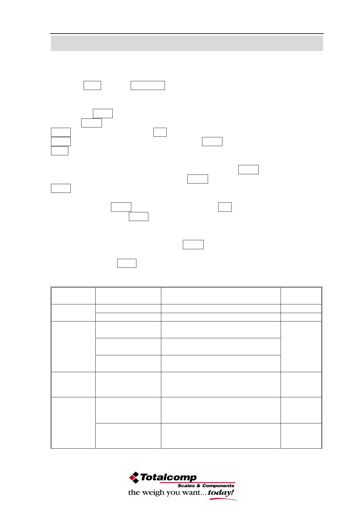 The scale has 6 parameters that can be set by the user plus a method of entering the