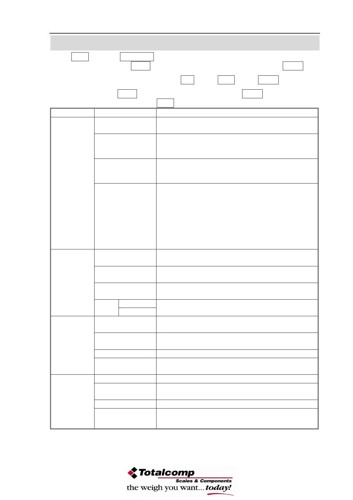 setting mode, press TARE key to select parameter, press ZERO key to enter into