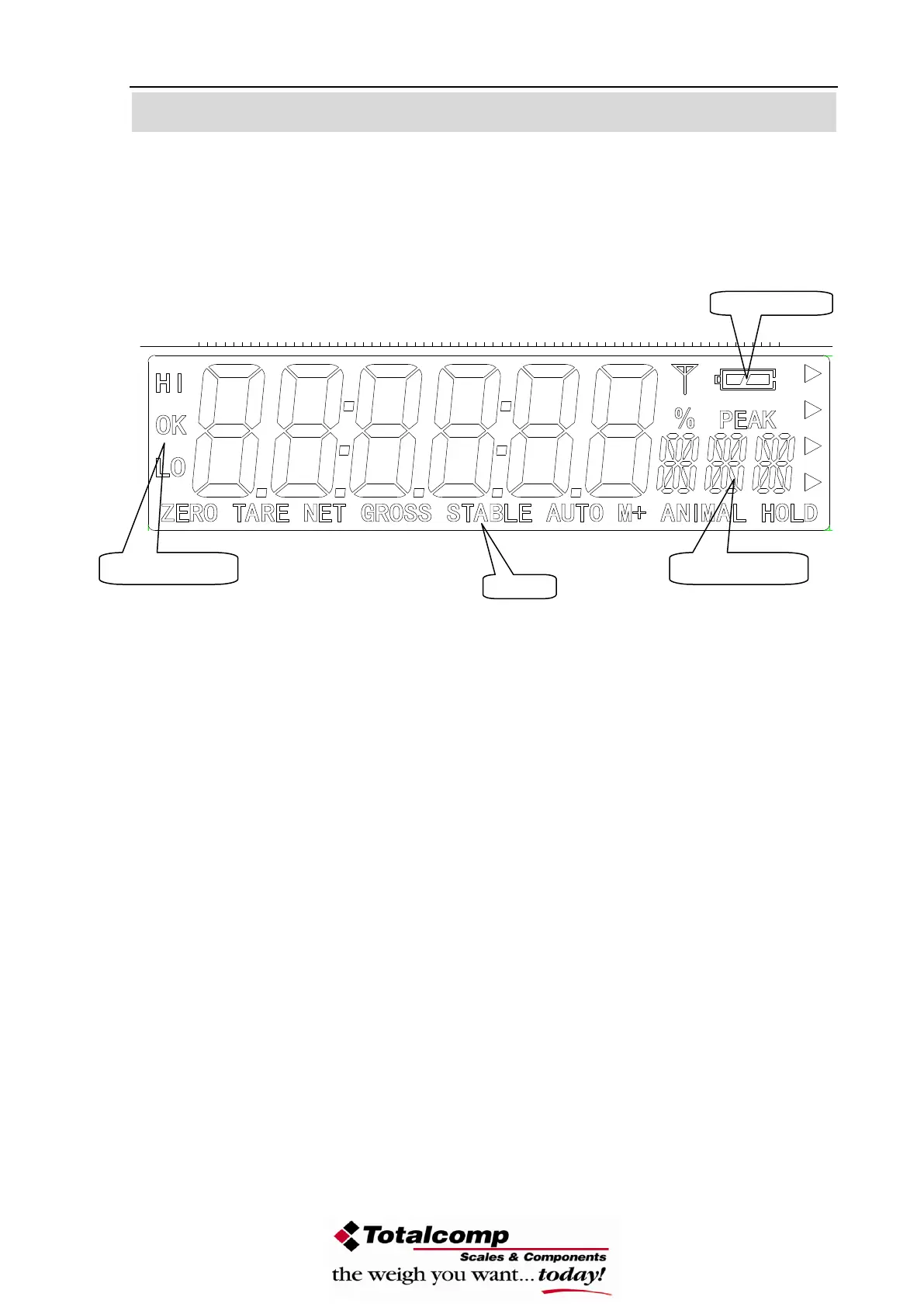 In addition there are labels for TARE, GROSS weight, Zero and for Low battery