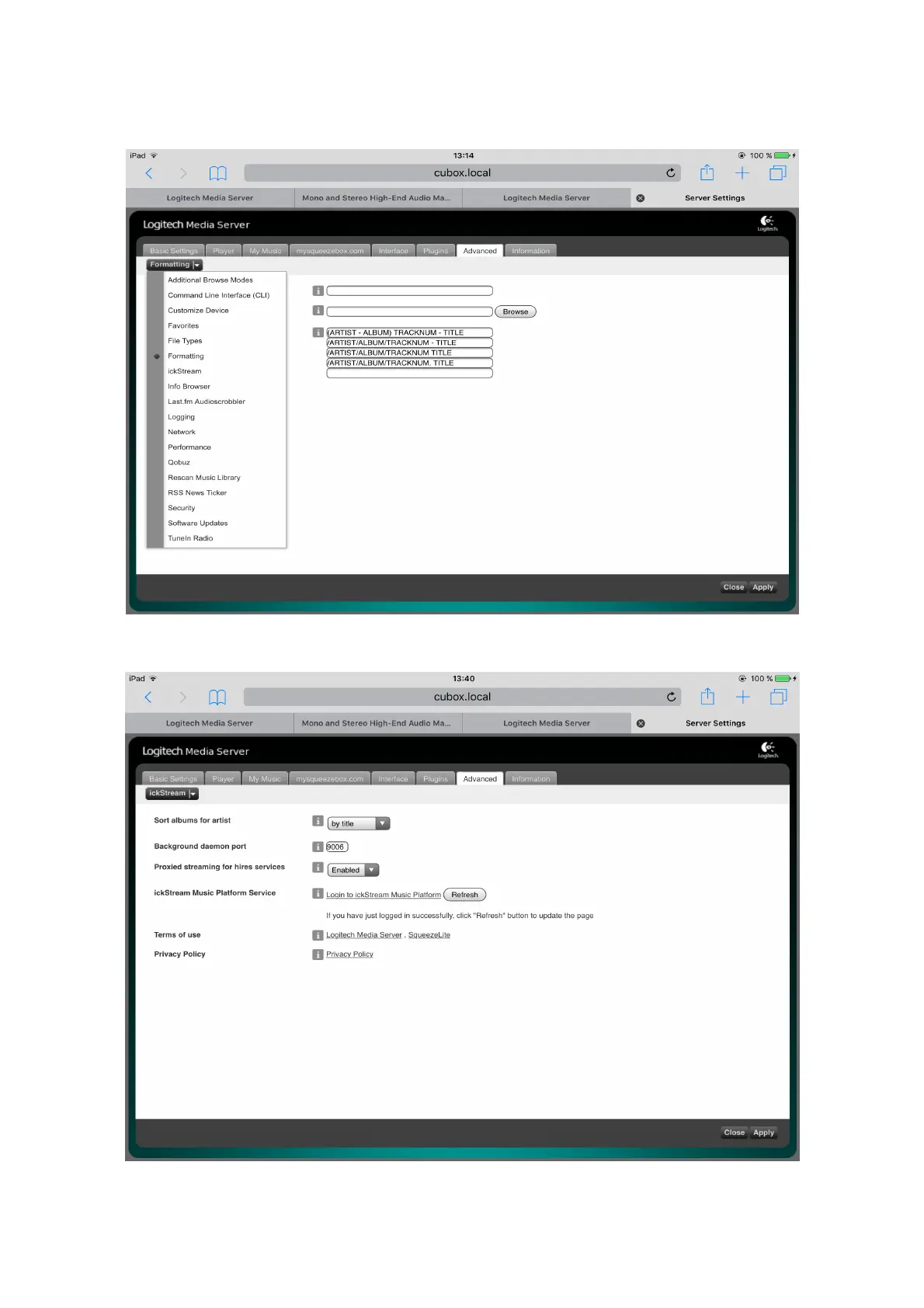 Totaldac d1 - Advanced LMS Configuration: IckStream; Accessing Advanced Settings; Configuring IckStream Service