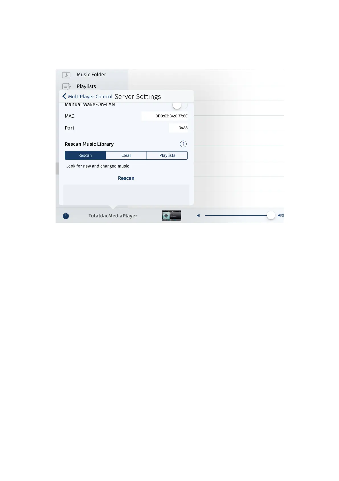 Totaldac d1 - Scanning Music Libraries with Ipeng; Accessing Music Source Settings; Rescanning Music Library
