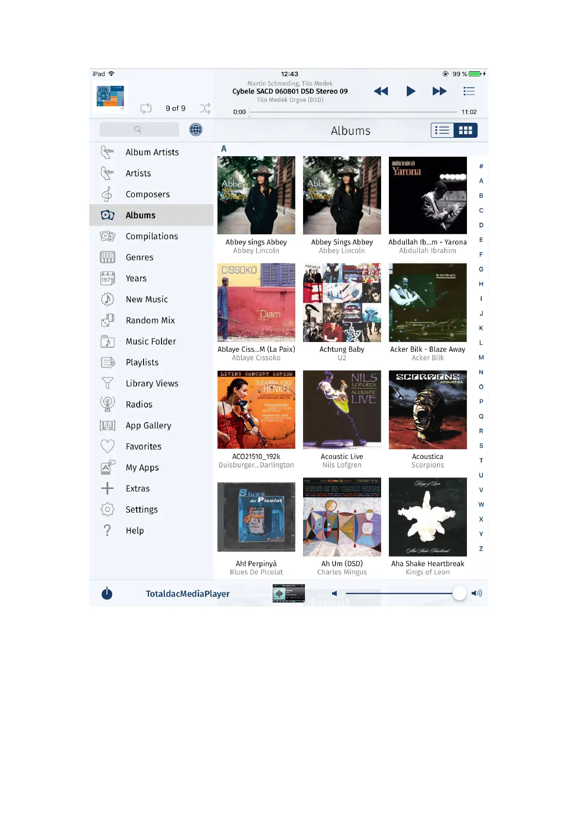 Totaldac d1 - Browsing Albums in Ipeng; Navigating Album Categories; Optimizing Audio Quality in Ipeng