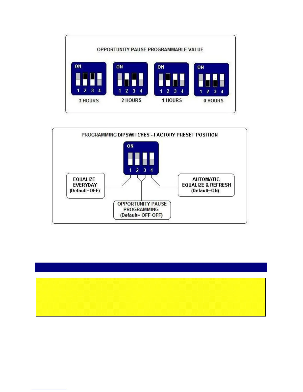 The other dip-switches 1 and 4 are used to set the daily and/or the weekly equalization.