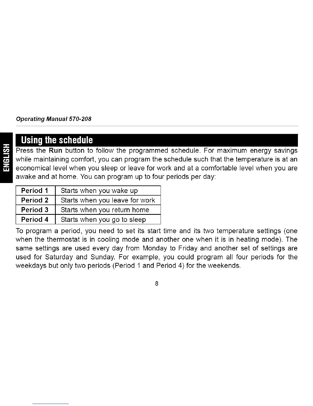 Press the Run button to follow the programmed schedule. For maximum energy savings