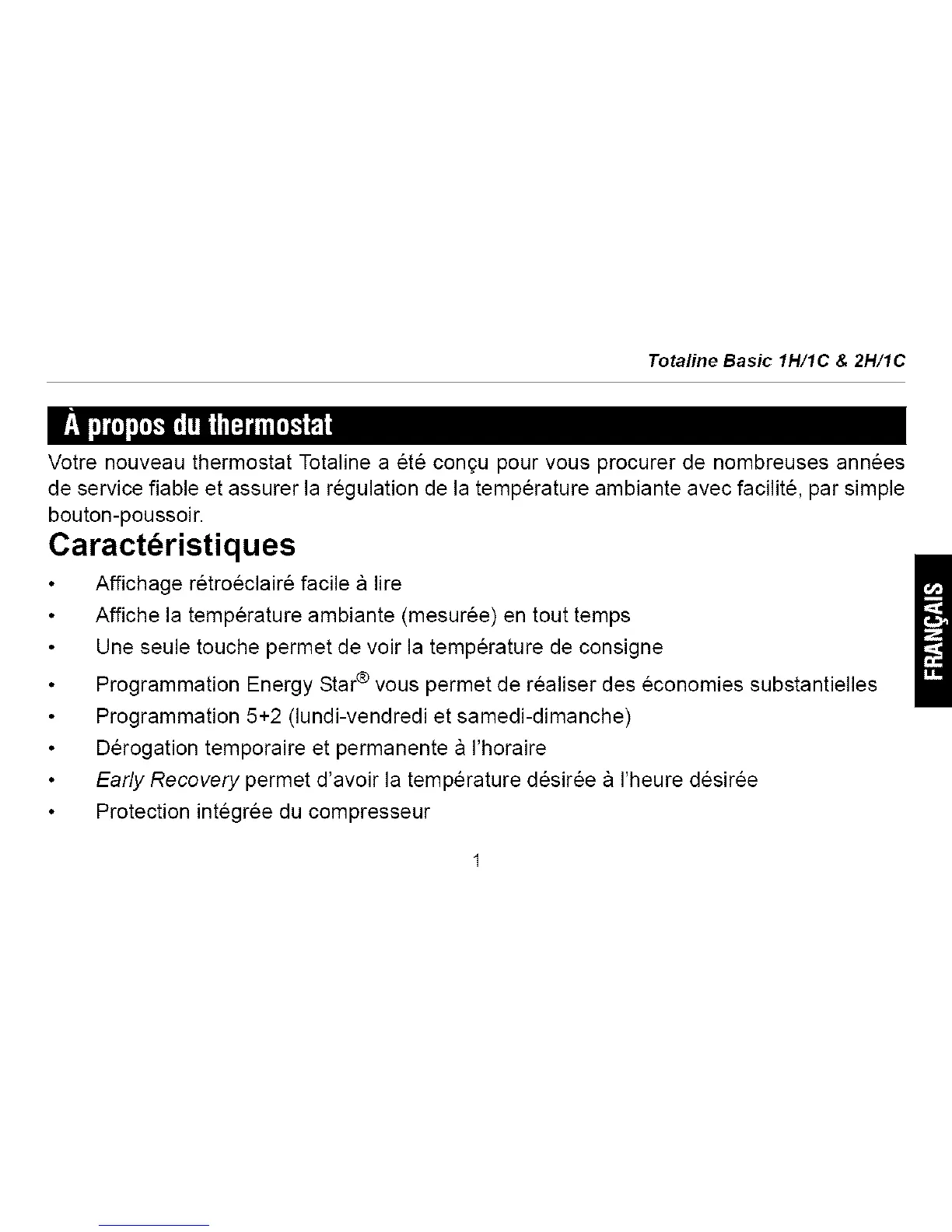 Votre nouveau thermostat Totaline a ete congu pour vous procurer de nombreuses annees