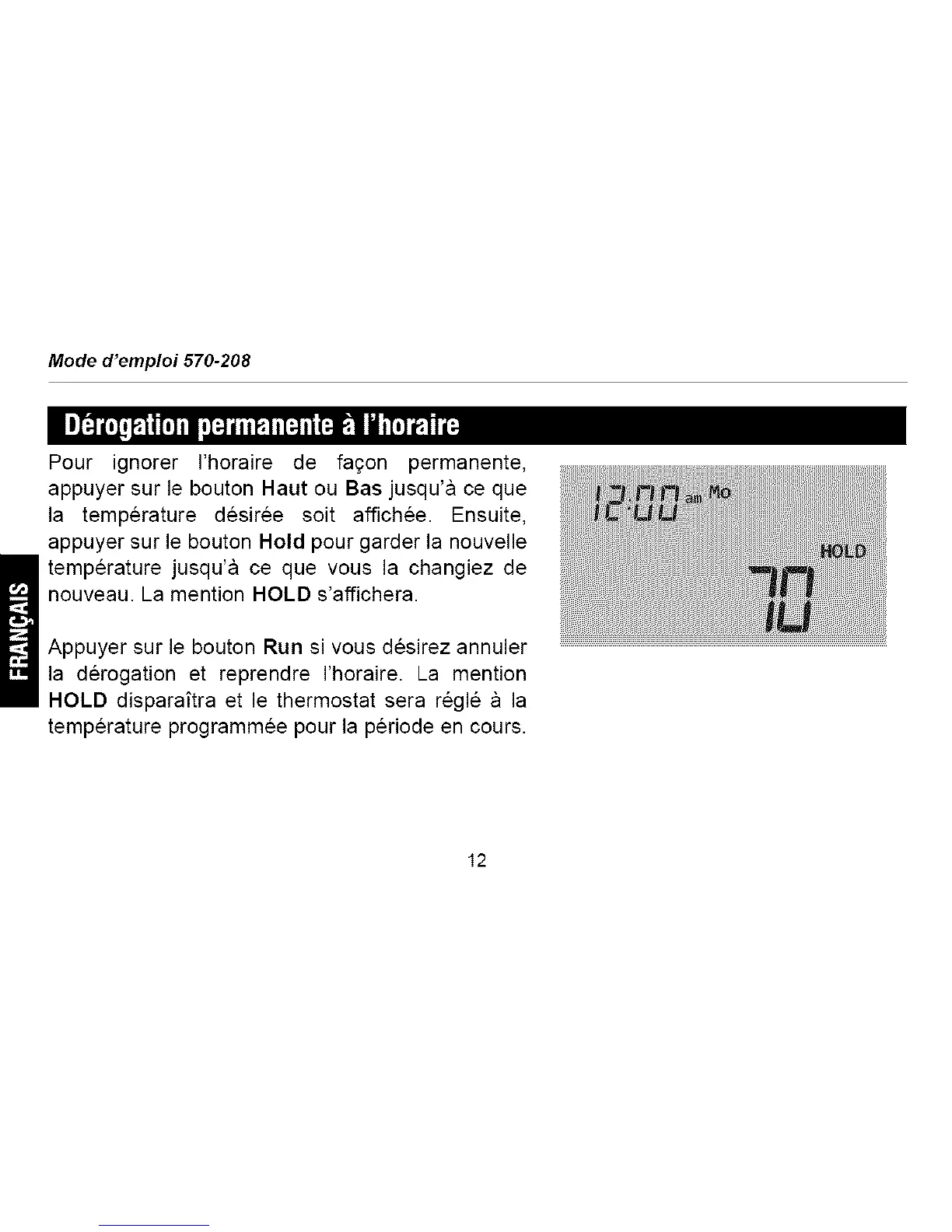 HOLD disparaftra et le thermostat sera regle a la