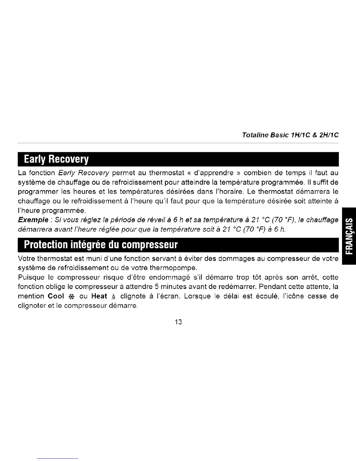 La fonction Early Recovery permet au thermostat <<d'apprendre >>combien de temps il faut au