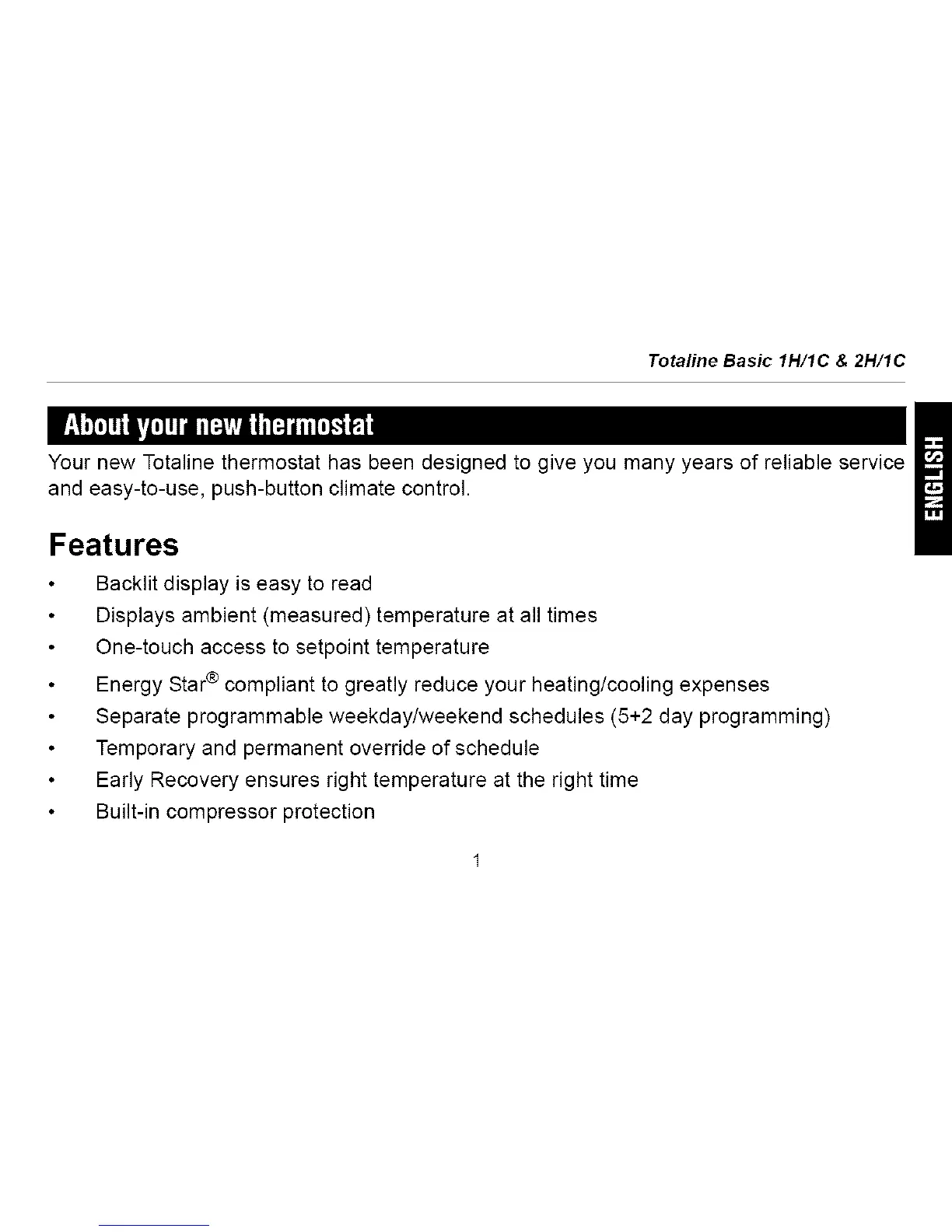 Your new Totaline thermostat has been designed to give you many years of reliable service