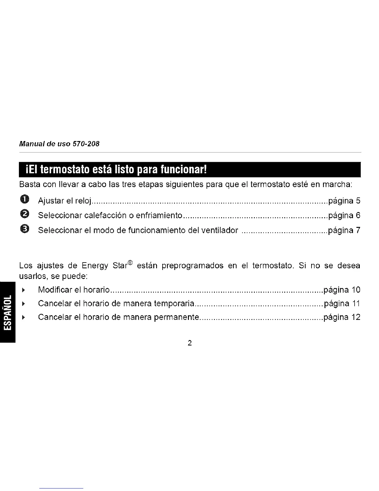 Los ajustes de Energy Star® estan preprogramados en el termostato. Si no se desea