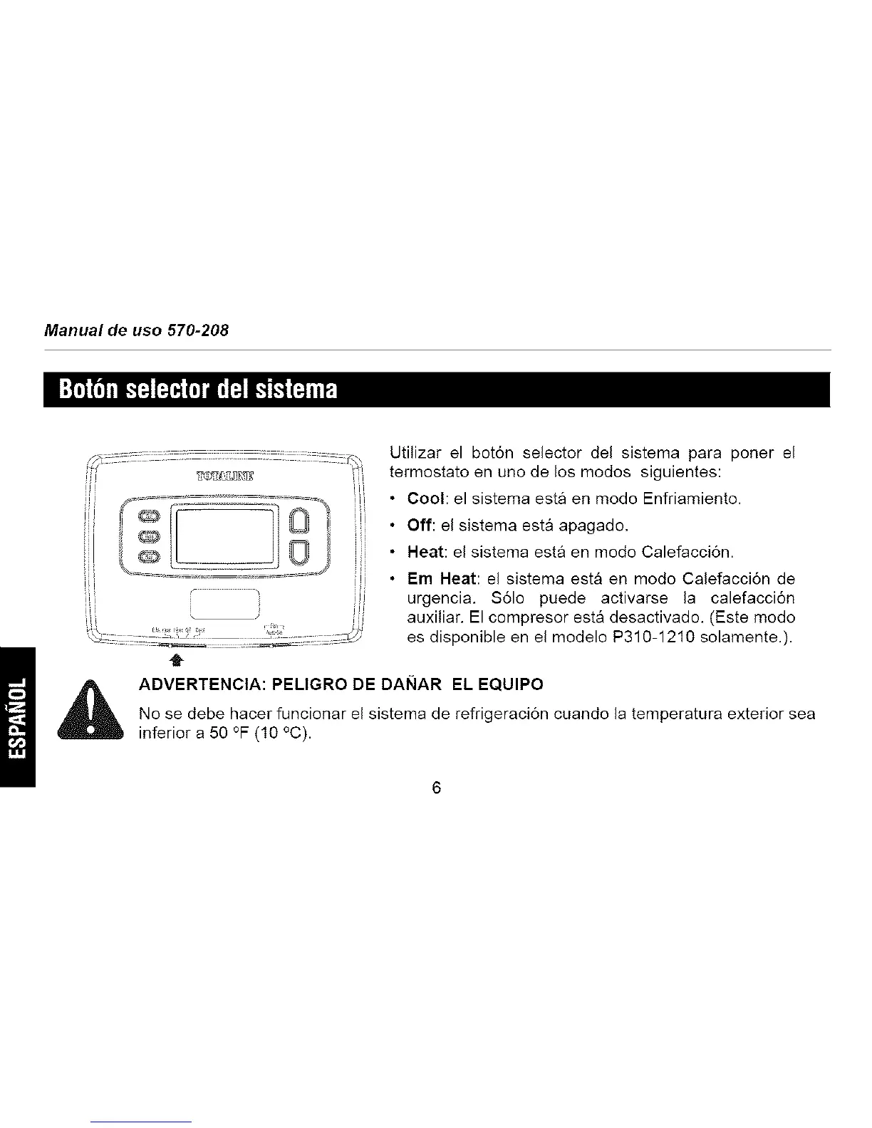 • Em Heat: el sistema esta en mode Calefacci6n de