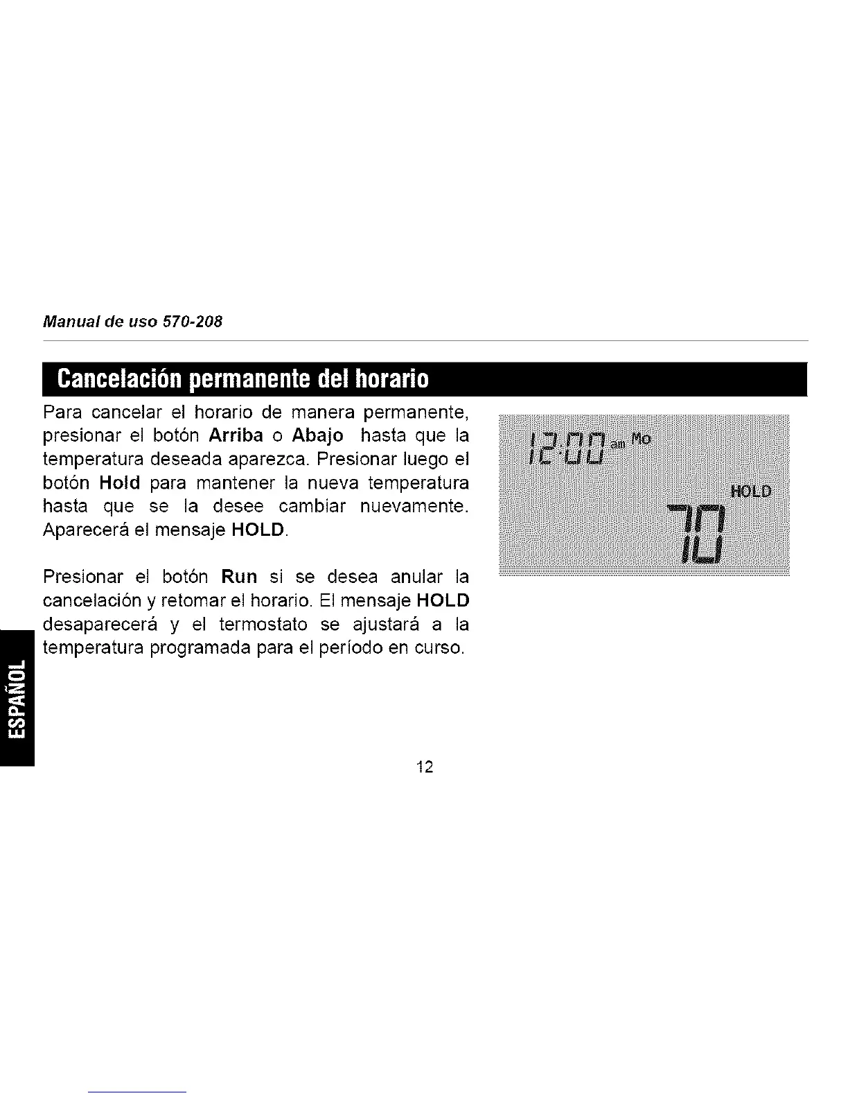 cancelaciSn y retomar el horario. El mensaje HOLD