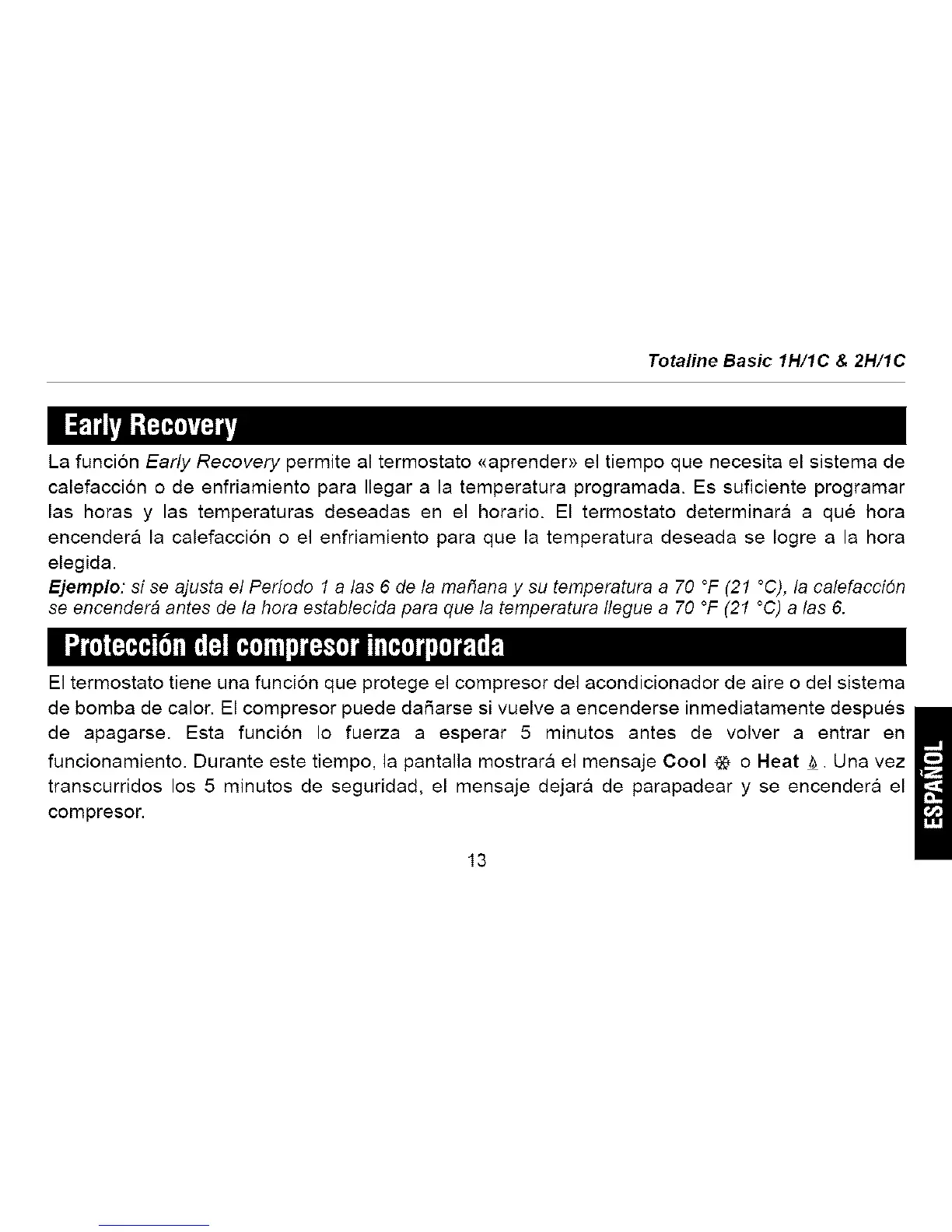La funcion Early Recovery permite al termostato <<aprender>> el tiempo que necesita el sistema de