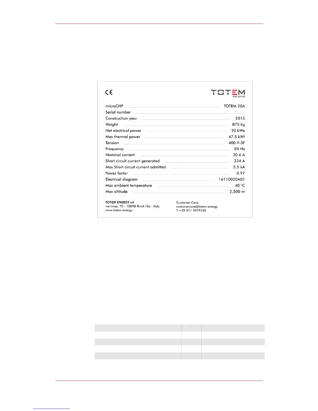 Each TOTEM® micro cogeneration unit is fitted with a special plate providing all