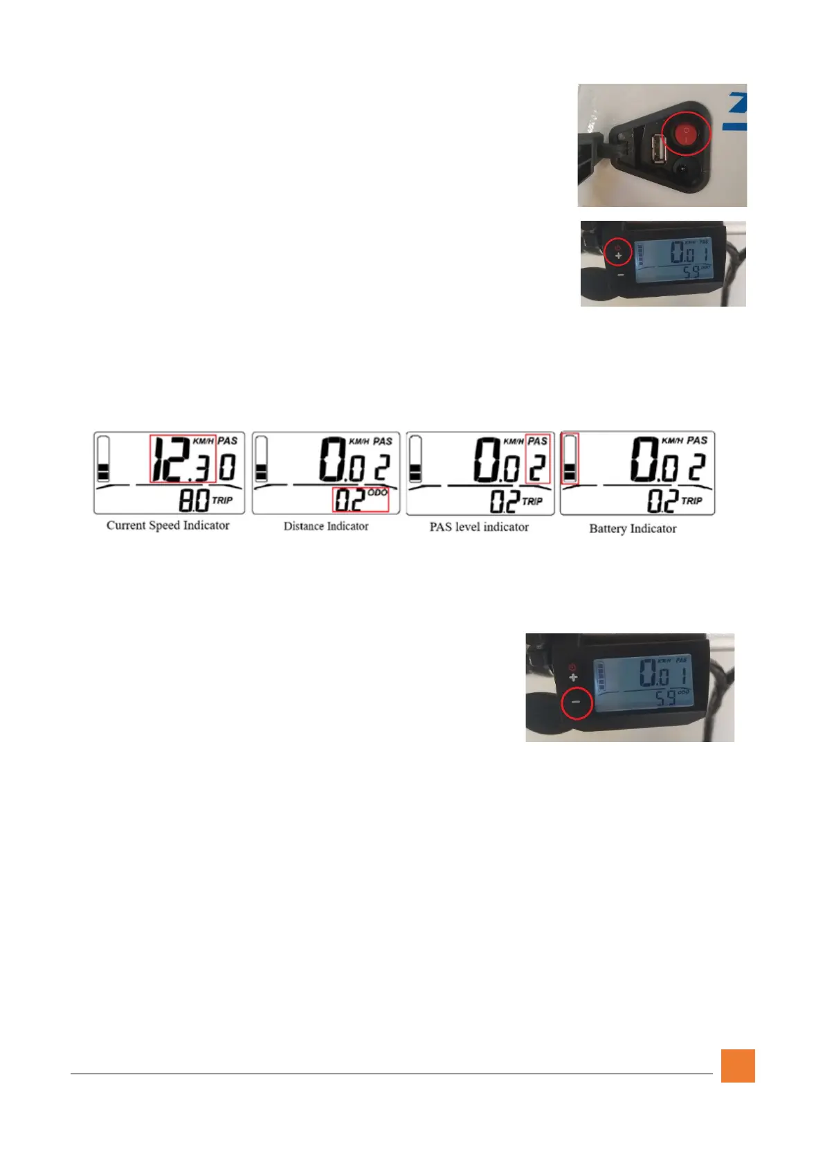 charge, current speed, pedal assist level, and either the odometer or the current trip