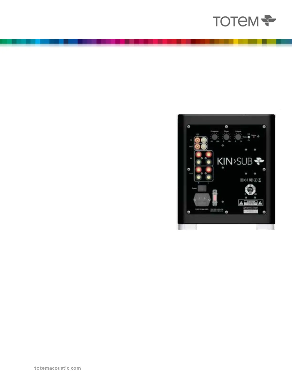 Note: The KIN Sub is available for 120V and 230V operation. Make sure that the voltage switch is in the