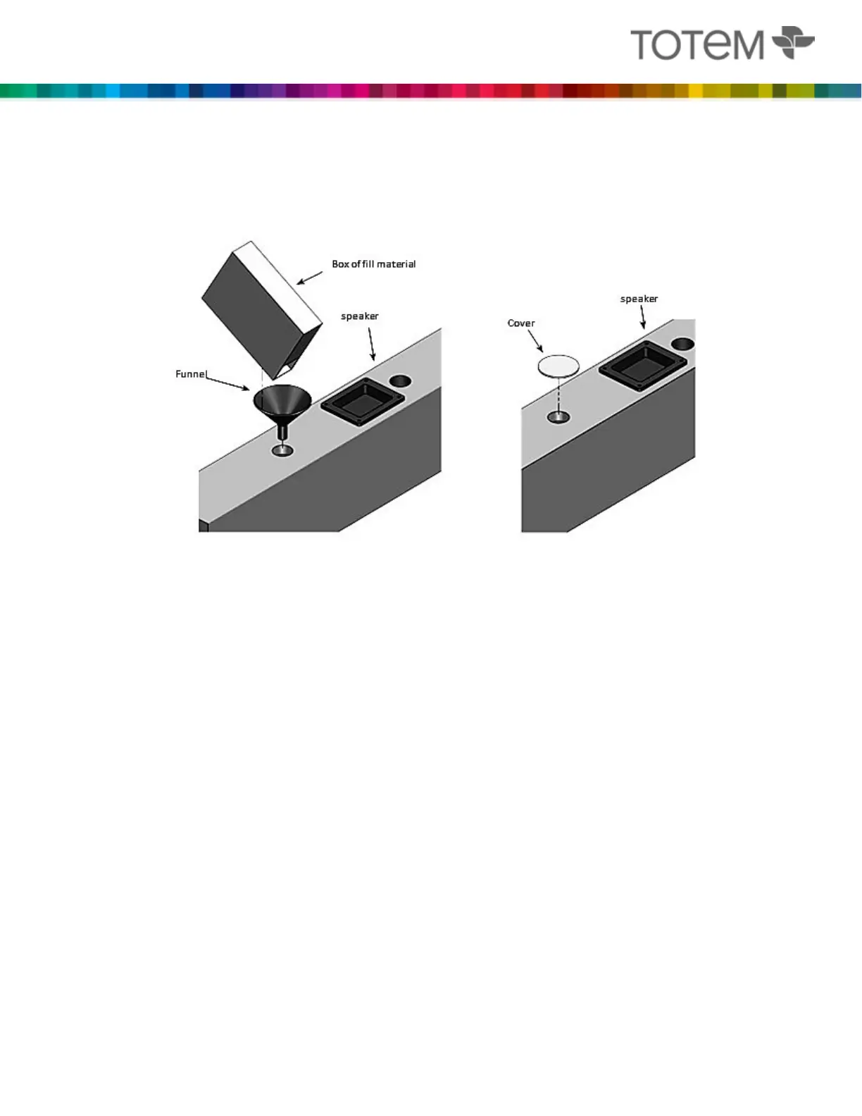 2. Fill only the lower opening, not the upper (Black plastic lined) cavity. The upper cavity is for bass reflex