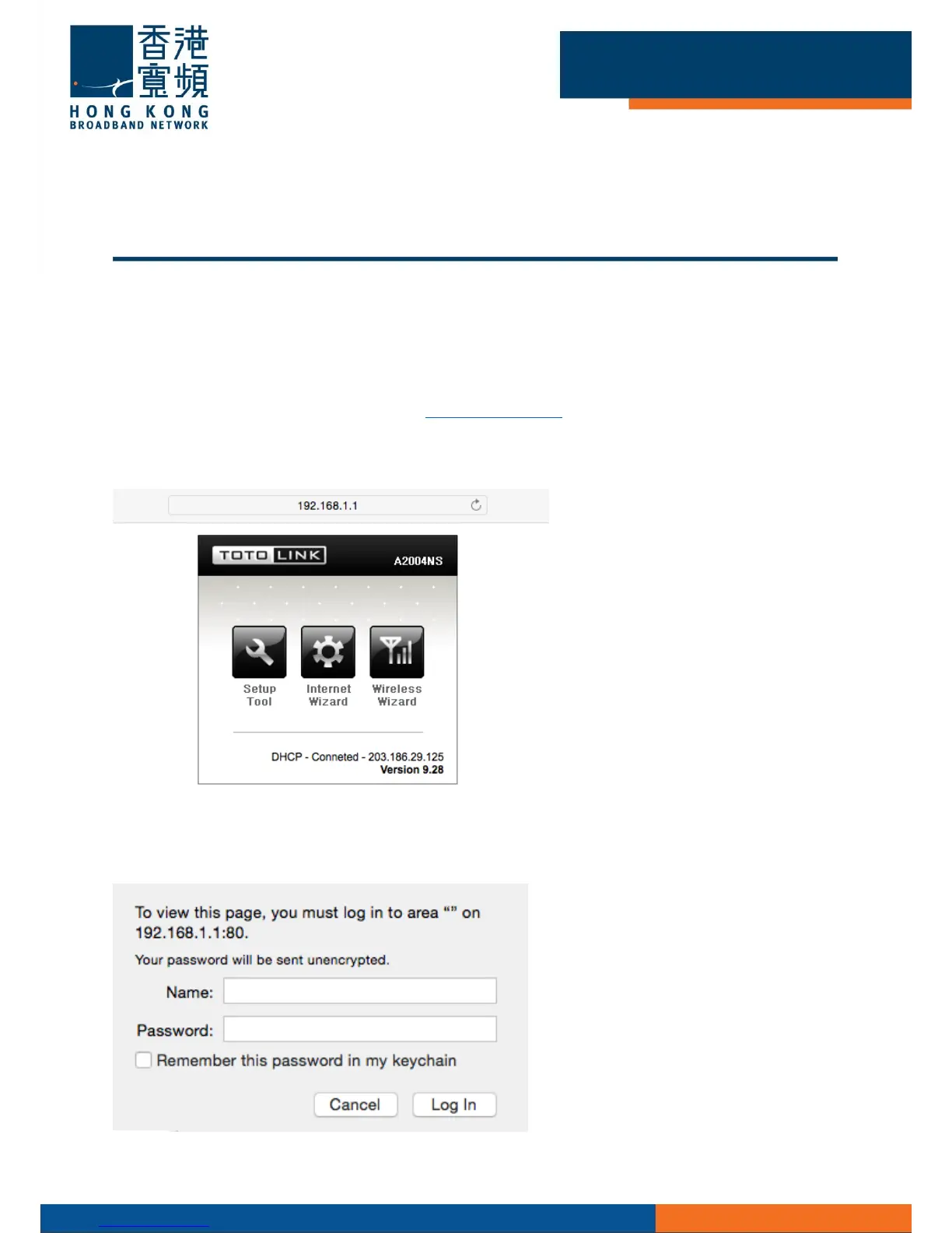 Open your Internet browser, and input [http://192.168.1.1] using the address-bar and press