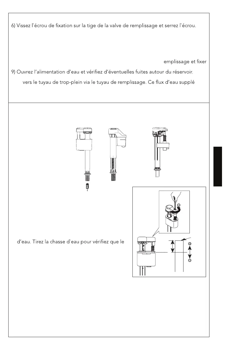 7) Branchez l’arrivée d’eau sur la tige de la valve de remplissage et serrer manuelle-