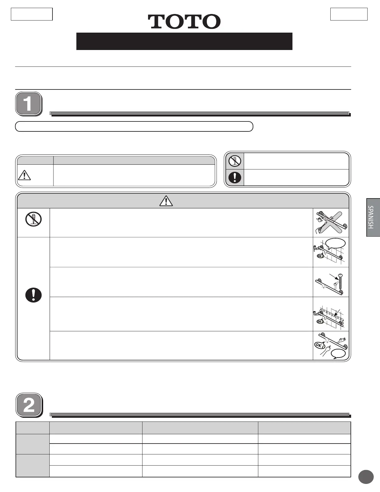 Las Agarraderas Soiree™ y Guinevere™ deben ser montadas en una superficie segura. TOTO® no se hace responsable