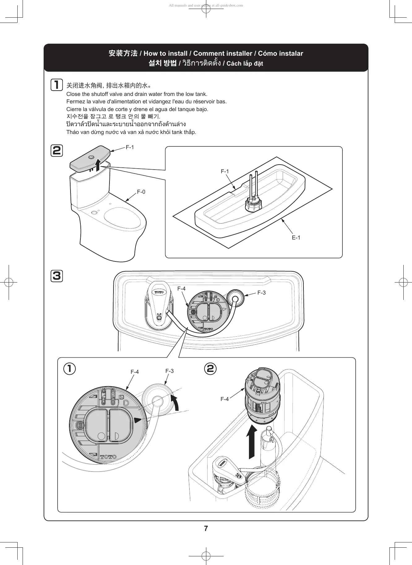 关 闭 进 水 角 阀 ,排 出 水 箱 内 的 水 。