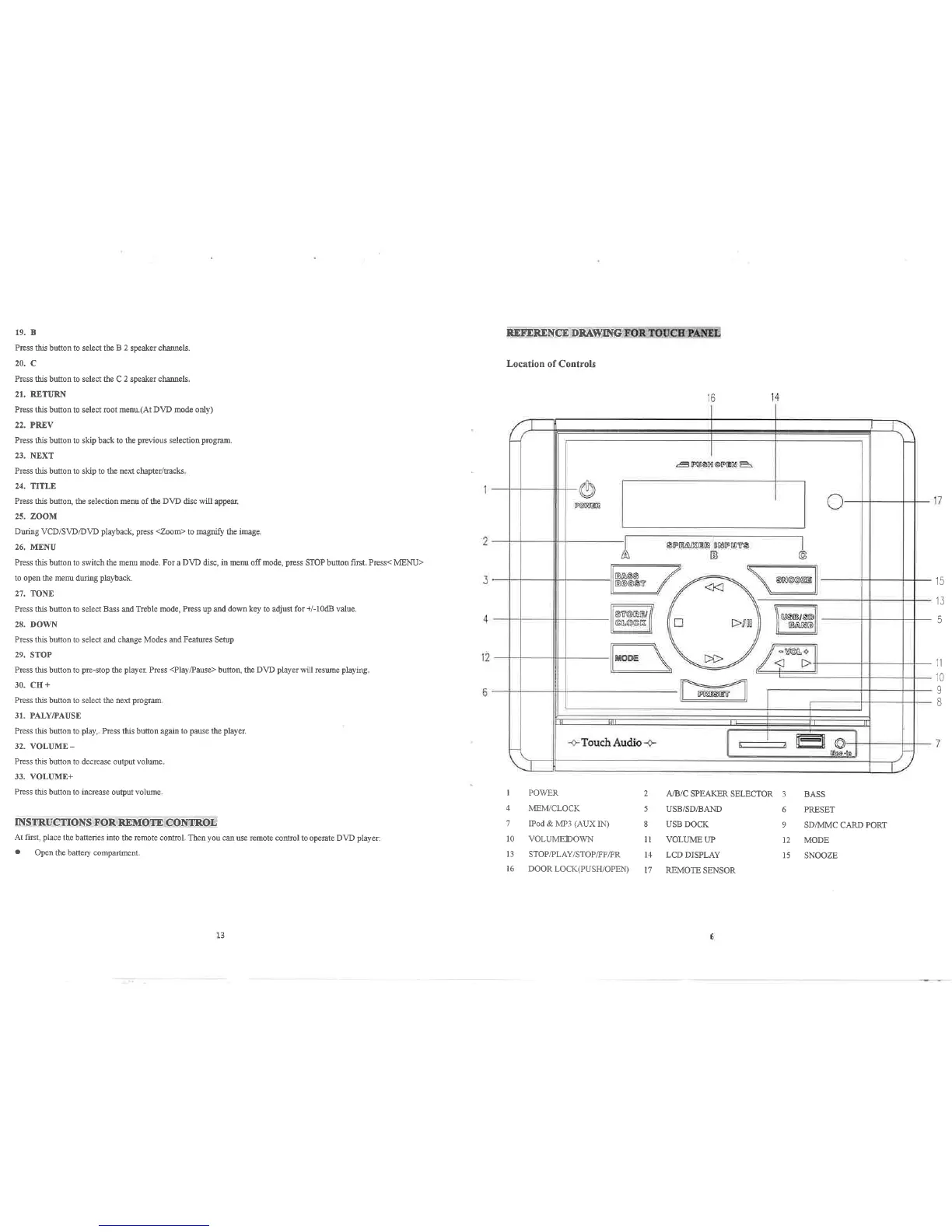 Touch Audio VD-400i - Control Panel and Remote; Touch Panel Control Overview; Remote Control Functions