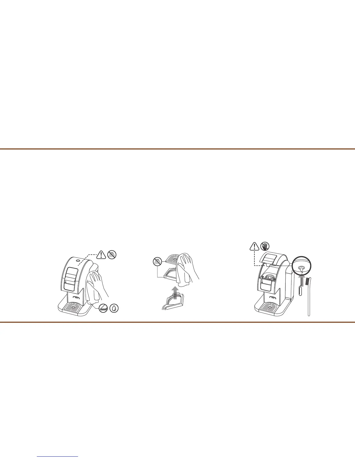 1. Use damp non-abrasive cloth for cleaning the exterior of the brewer. Never immerse the brewer in water or use a dishwasher to clean the brewer. (Fig. 16)
