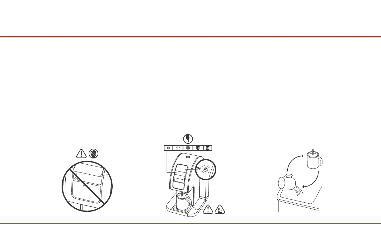CAUTION: DO NOT remove the mug until the brewing indicating light stops blinking.