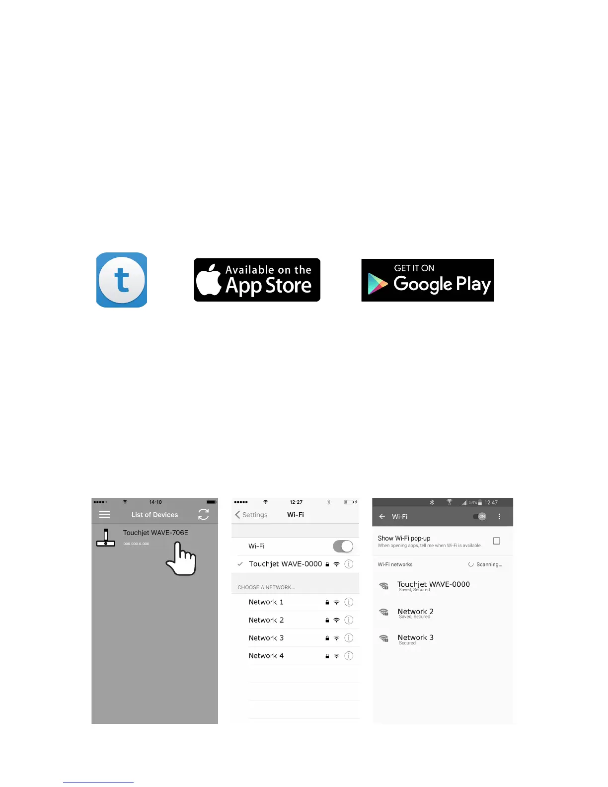 see your WAVE listed. Tap Touchjet WAVE-XXXX to connect the two devices (see right