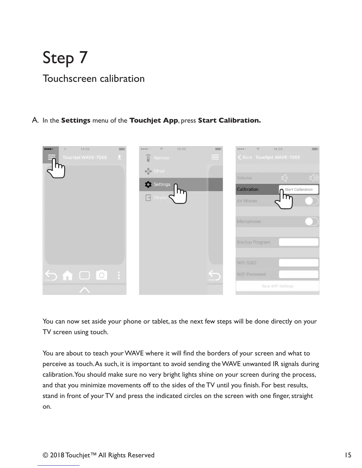 A. In the Settings menu of the Touchjet App, press Start Calibration.