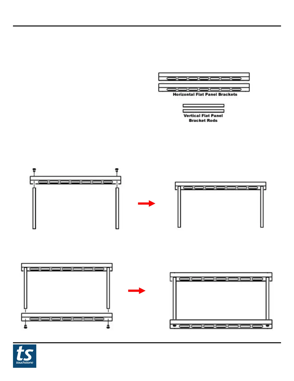 1. Attach the 2 vertical flat panel bracket rods to the top horizontal flat panel bracket. The elongated holes in the