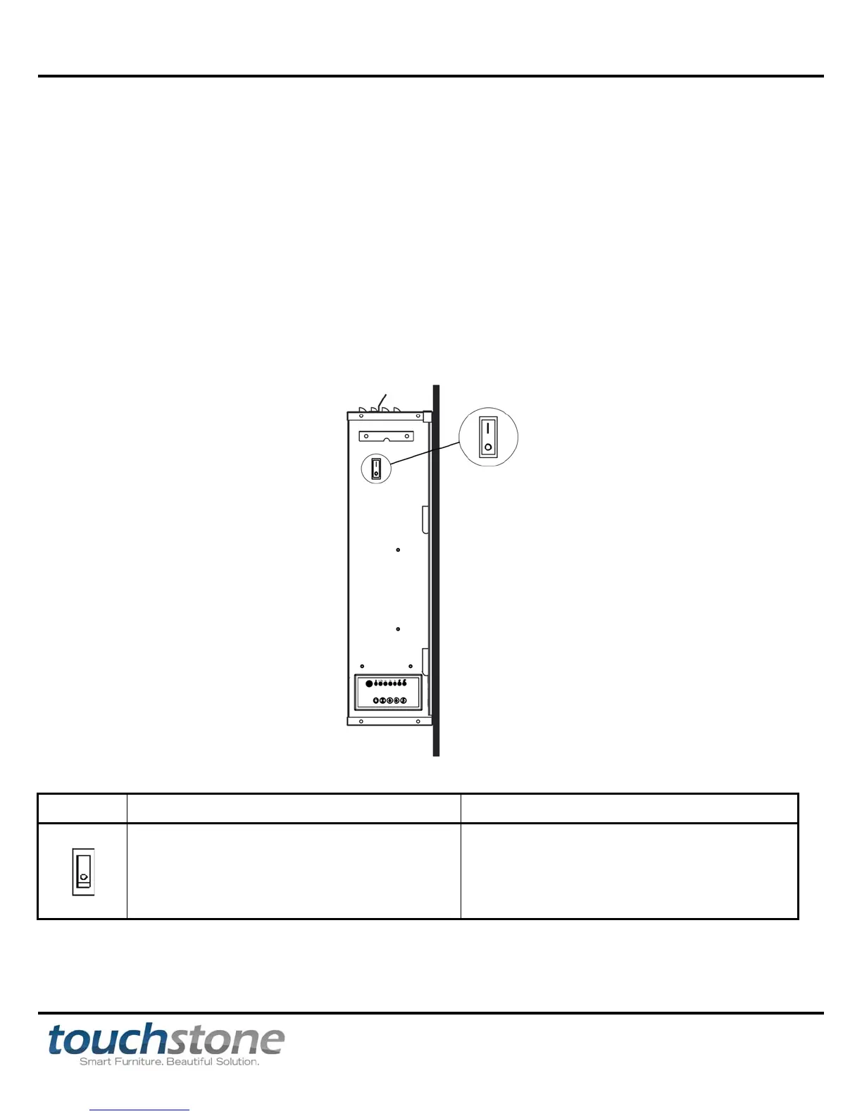 Note: The fireplace’s control panel and remote control will not work if this switch is not in the ON position.