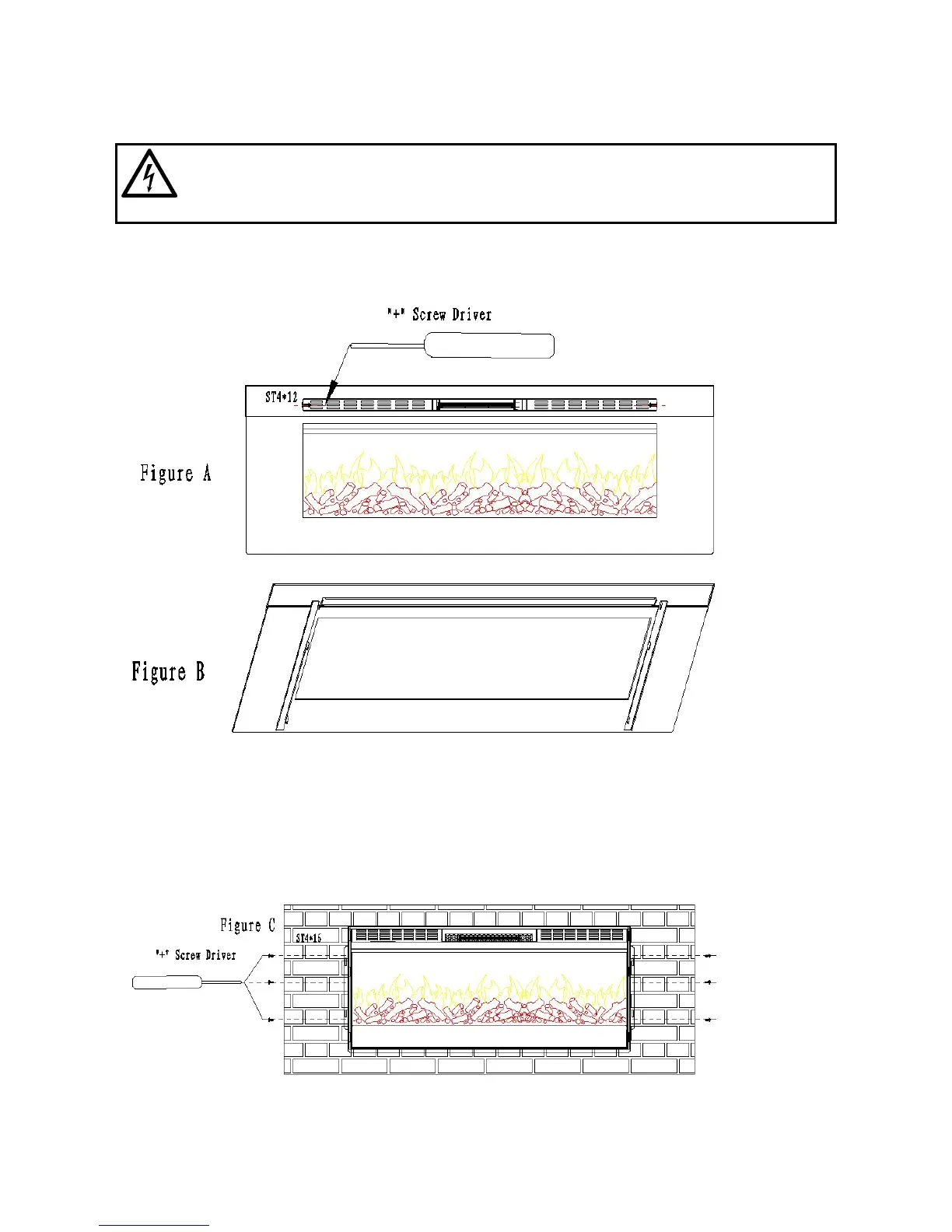 **Note: If mounting fireplace below a TV, please leave at least 12” between top of fireplace and