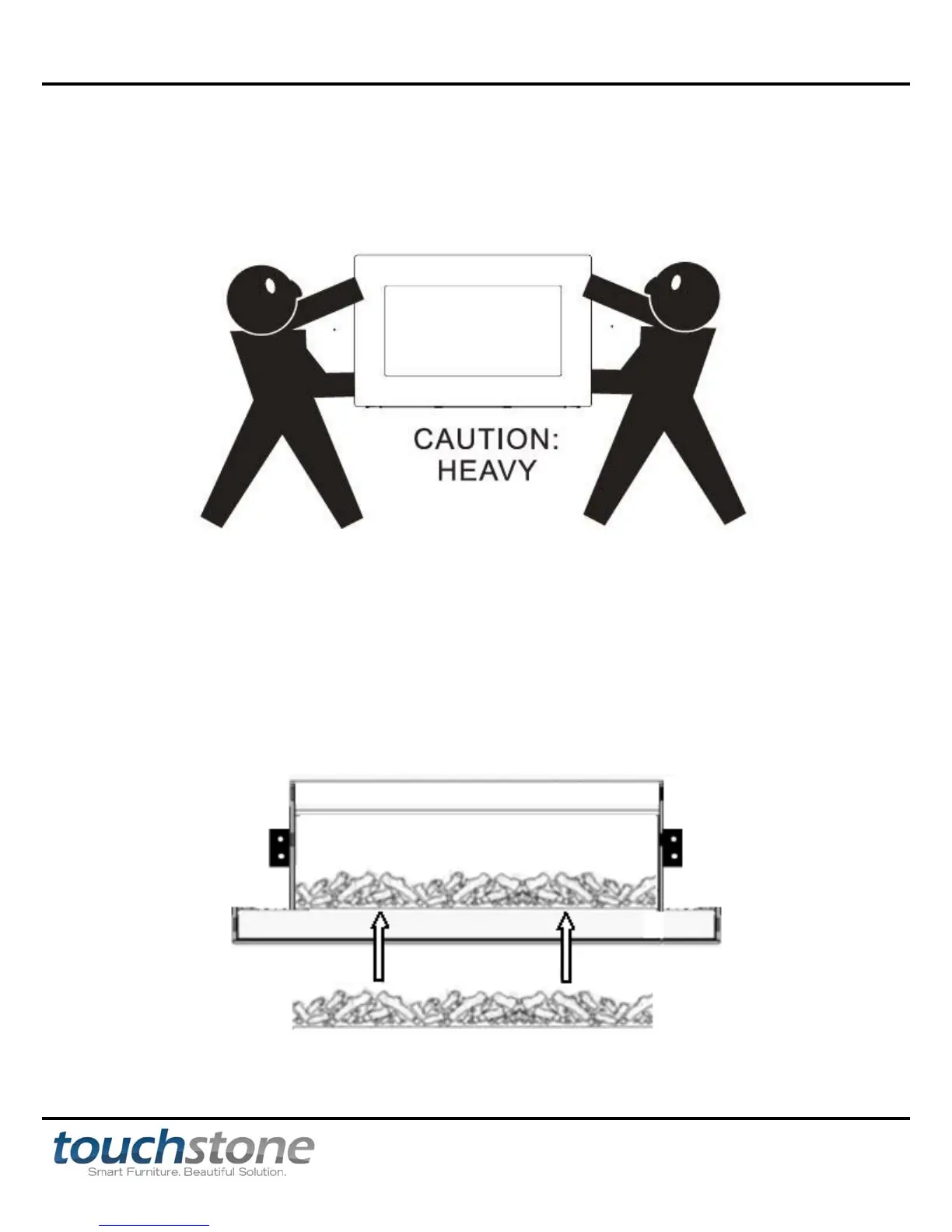 fireplace. Once aligned, the hooks will insert into the holes in the back of the fireplace and lock in the down
