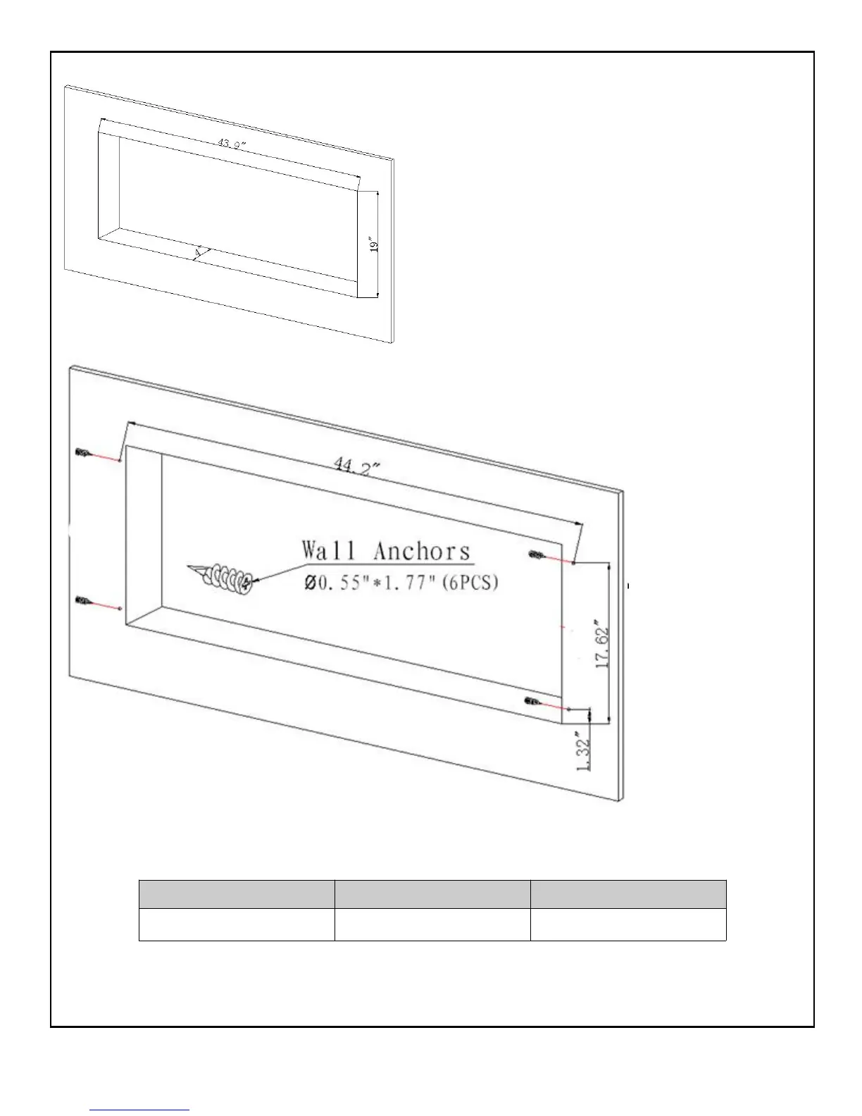STEP B. Fix the three wall anchors in each side of the fireplace box according to the