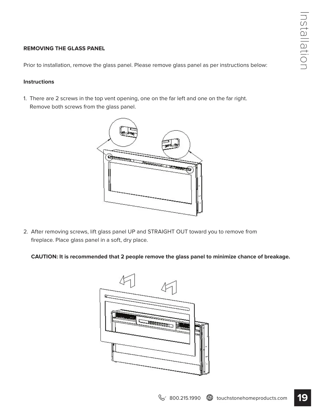 Prior to installation, remove the glass panel. Please remove glass panel as per instructions below: