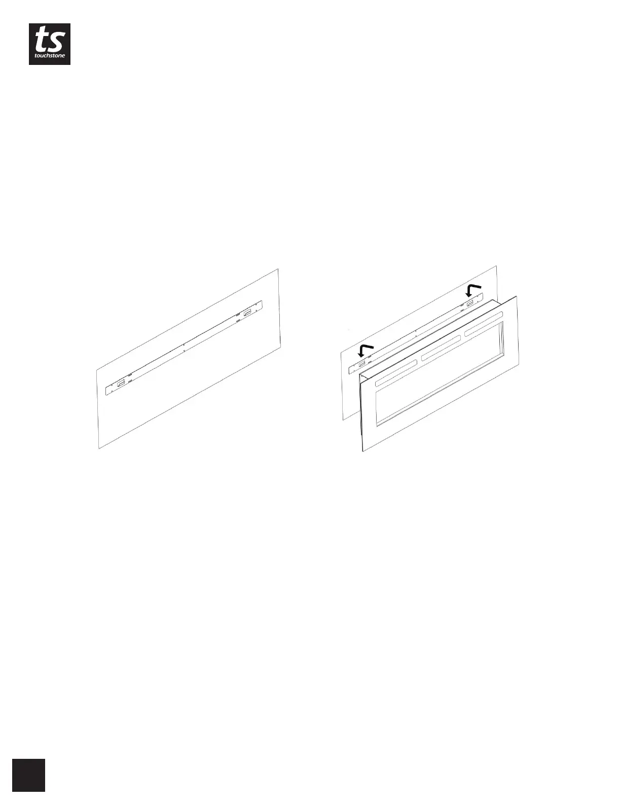 5. on the bracket into the back of the fireplace. The 2 hooks on the mounting bracket will line up with