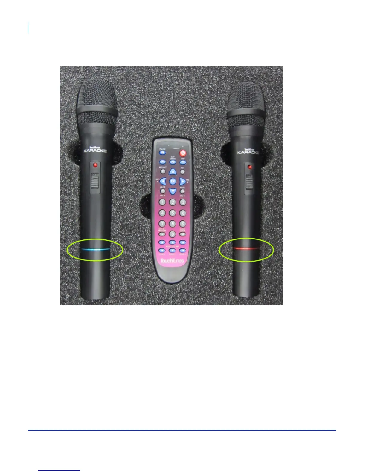 The color rings for these microphones are blue and red, indicating they are part of a Kit 1
