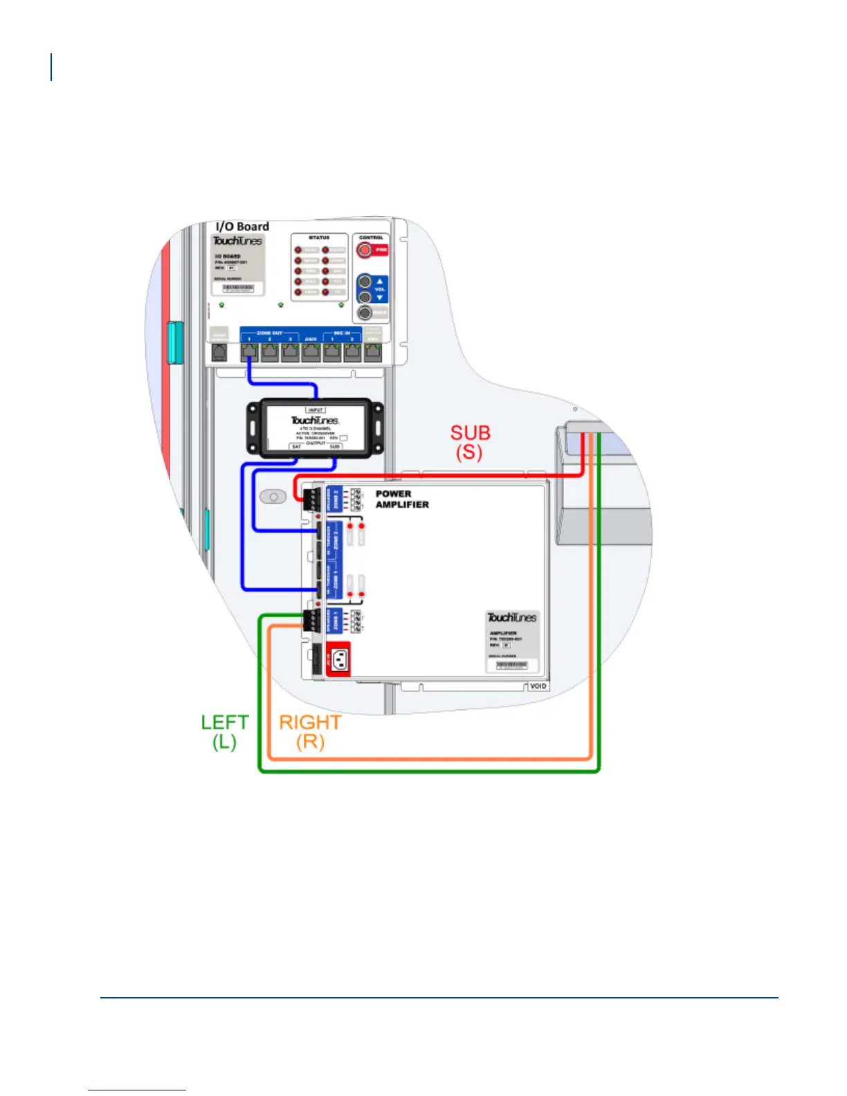Pass the speaker wires into the Virtuo and connect the wires inside the Virtuo, according to this diagram, and