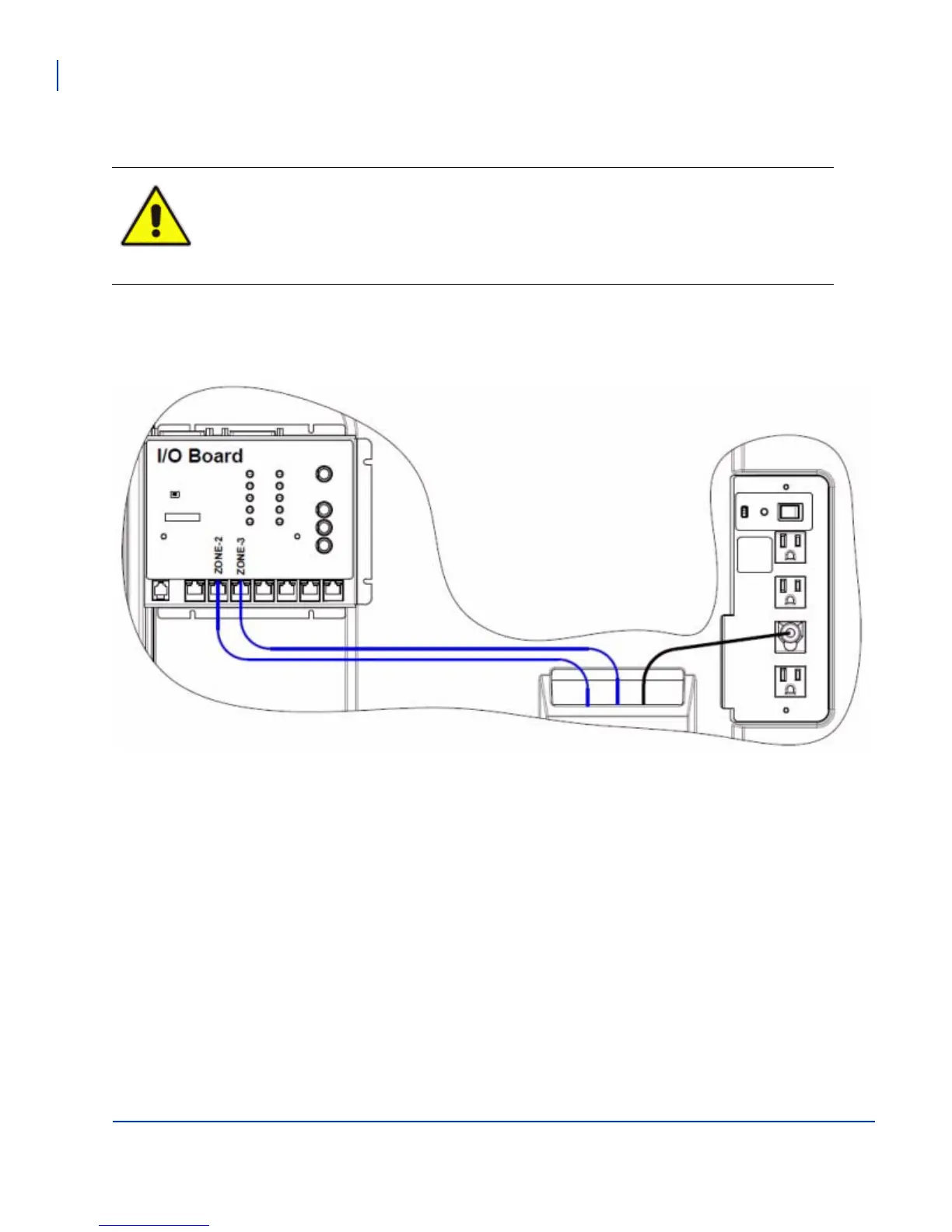 This diagram shows how to connect the I/O board Zones 2 and 3 to the DA-415 amplifier, and how to connect